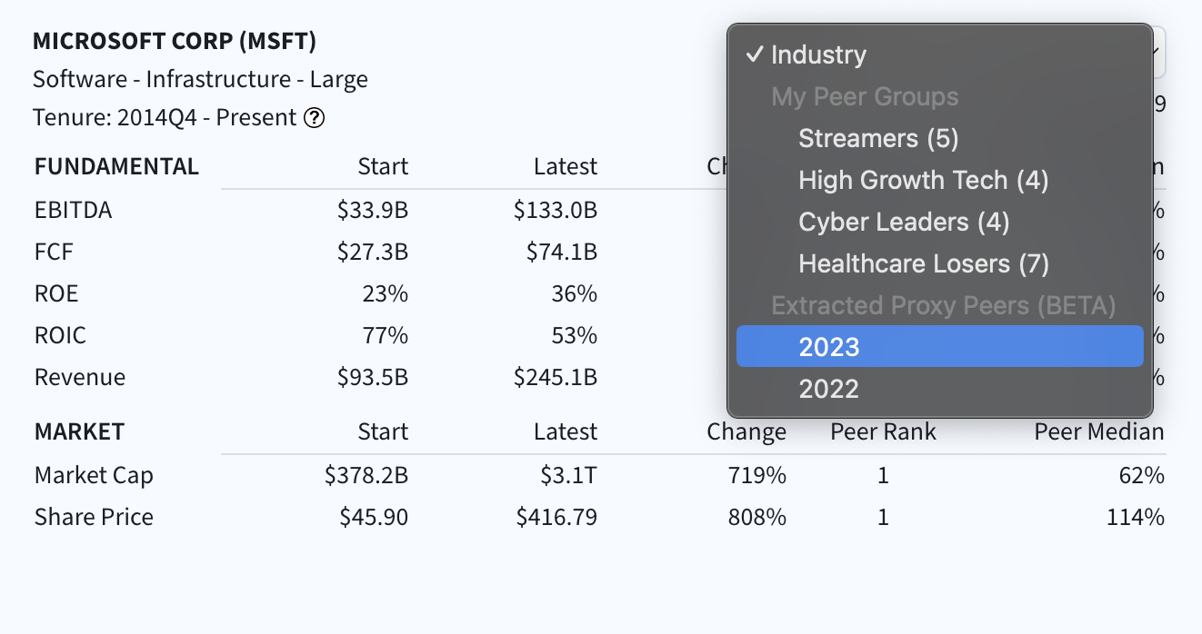 - Performance Scorecards -- throughout the platform -- allows users to benchmark a company's performance against its peers, providing a clear view of how it performed during the executive/director's tenure.